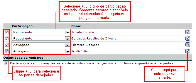 2. Para avançar para a etapa de anexar documentos, é preciso individualizar todas as partes selecionadas por meio do botão