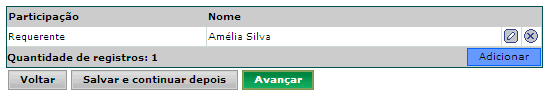 - cadastrar novas partes, clicando no botão Adicionar.